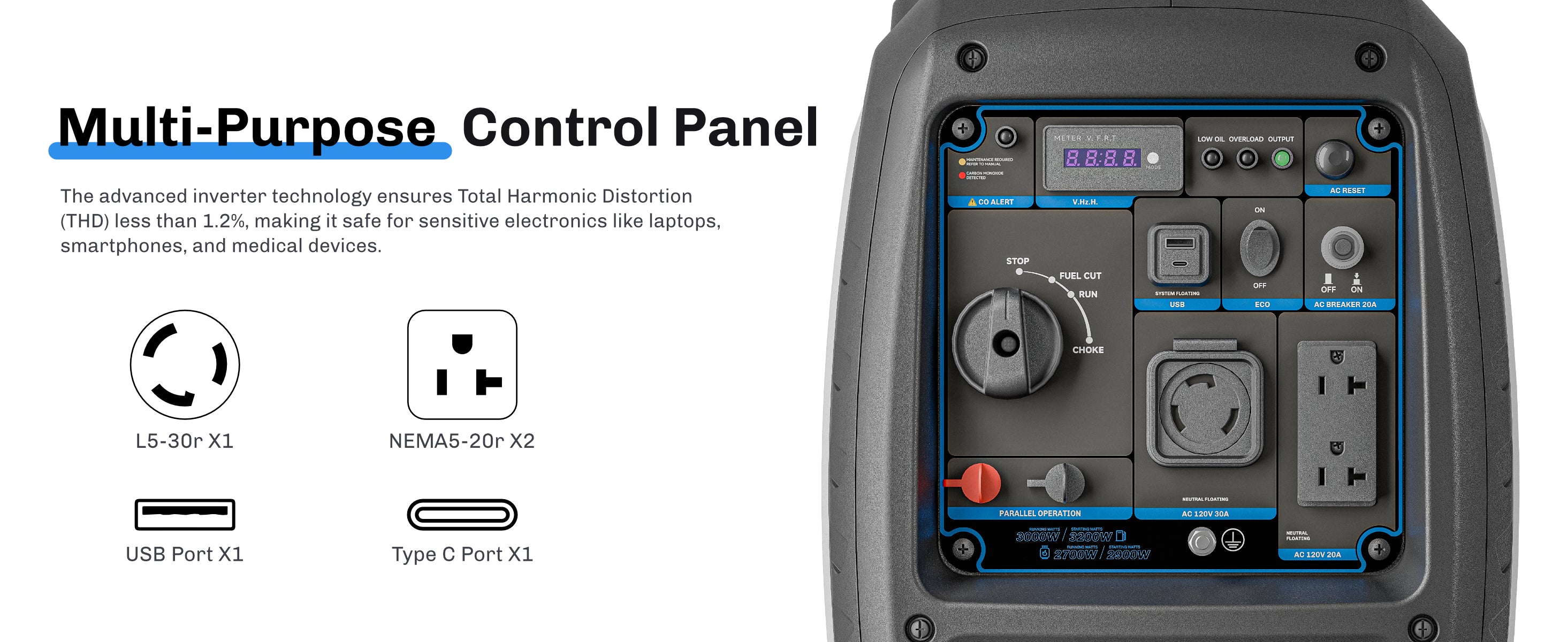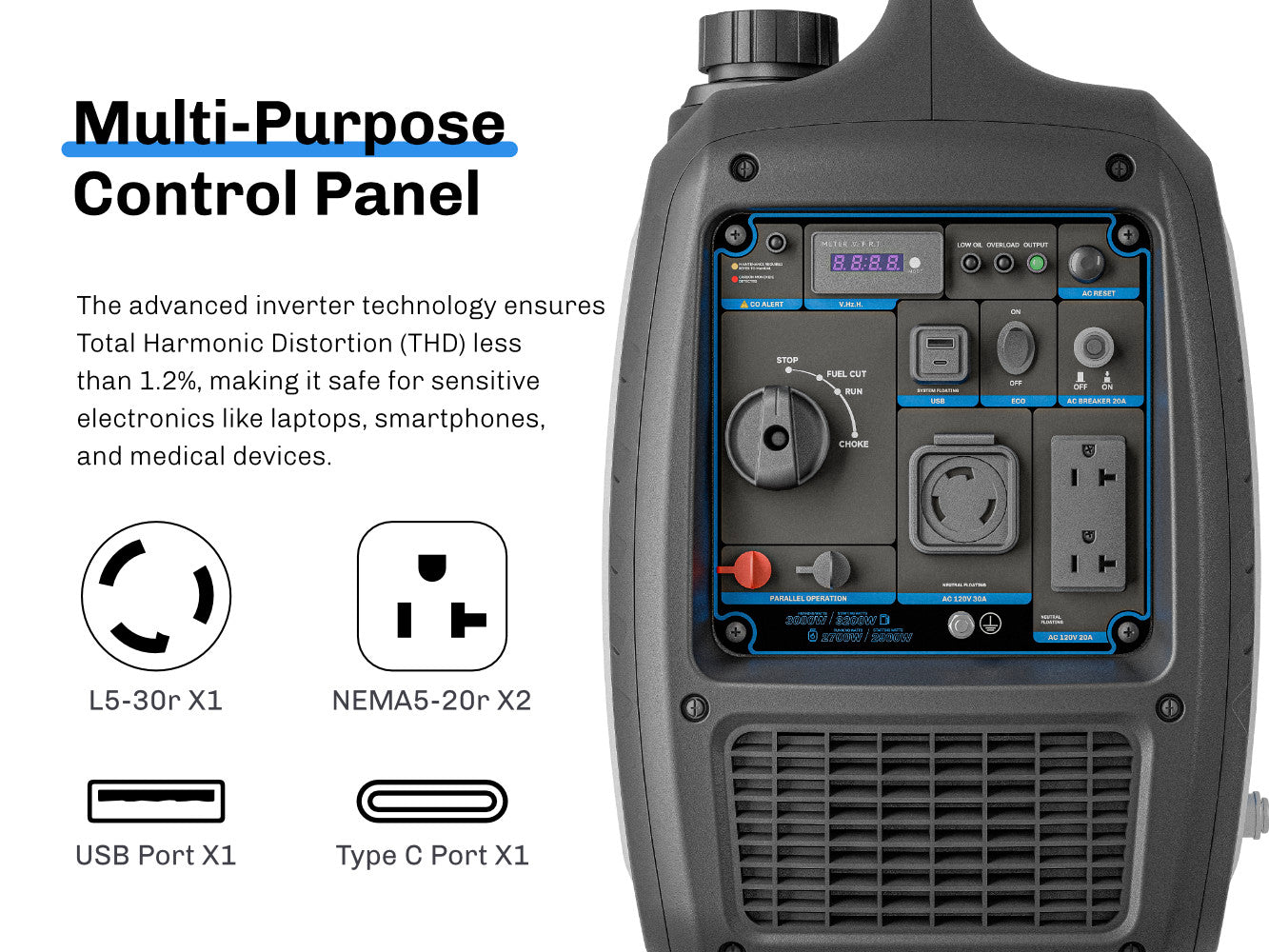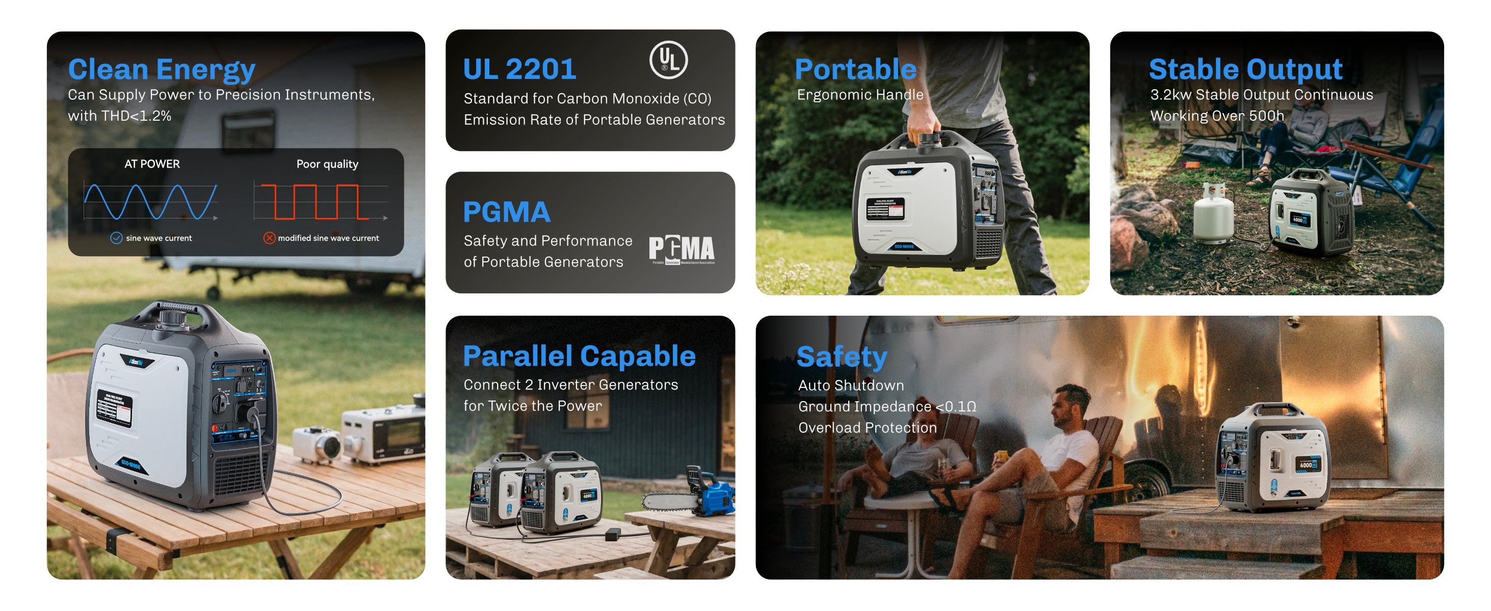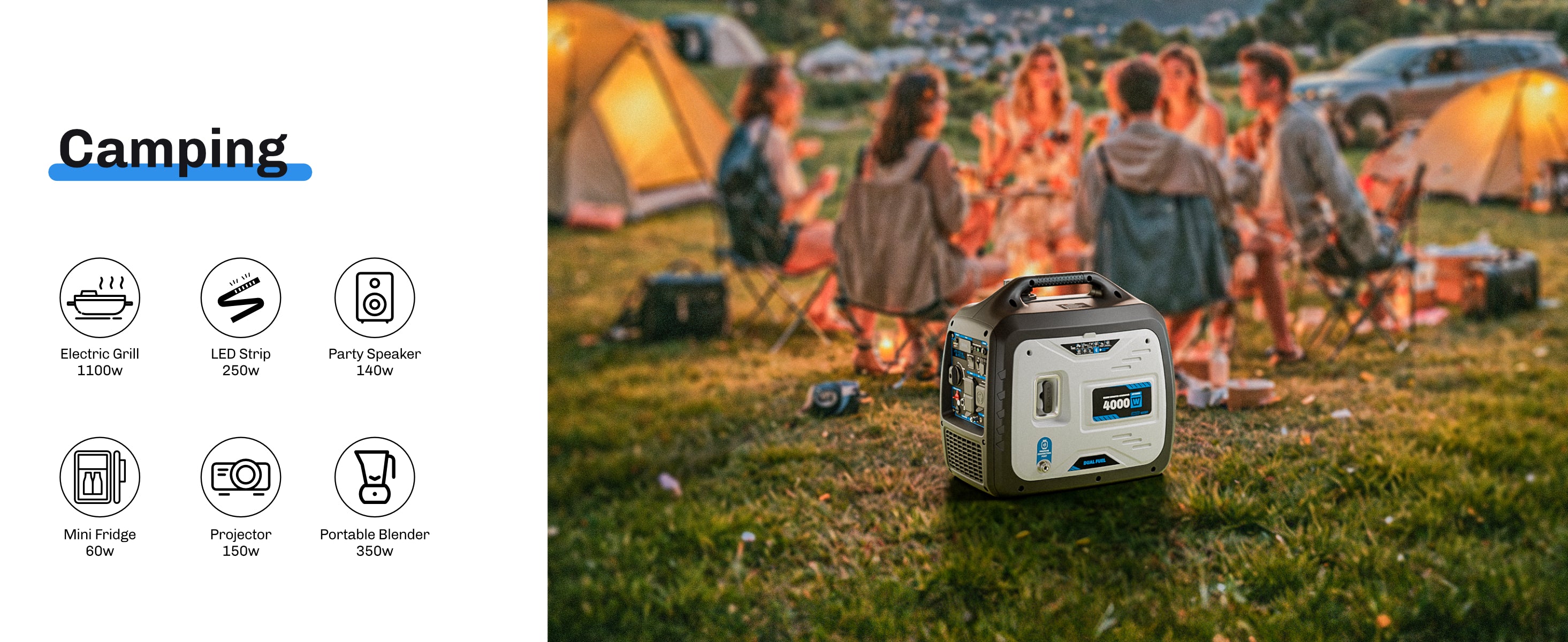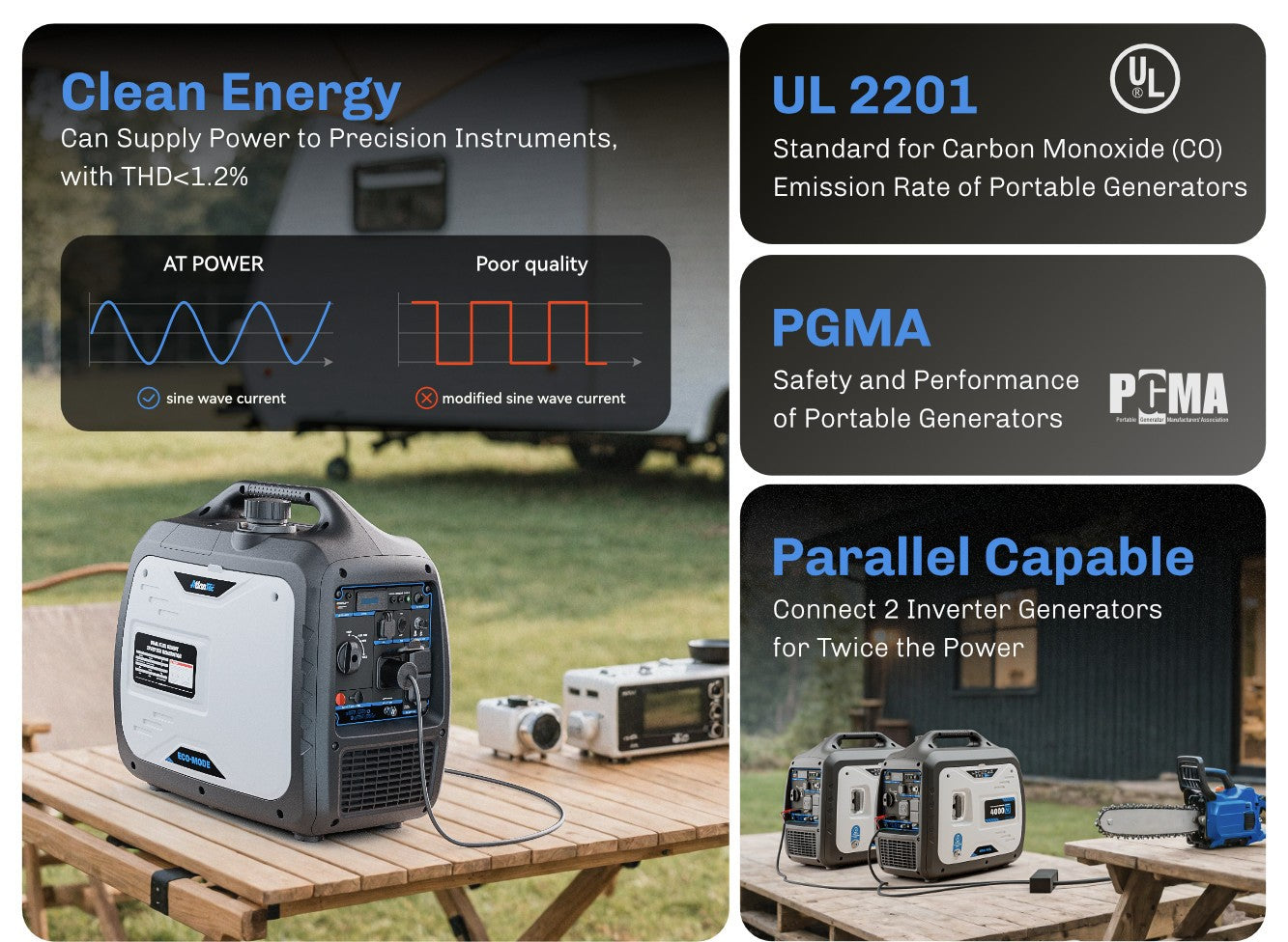 • Super Quiet Inverter Technology: Low-noise operation with clean, stable power – safe for sensitive electronics like laptops and phones.