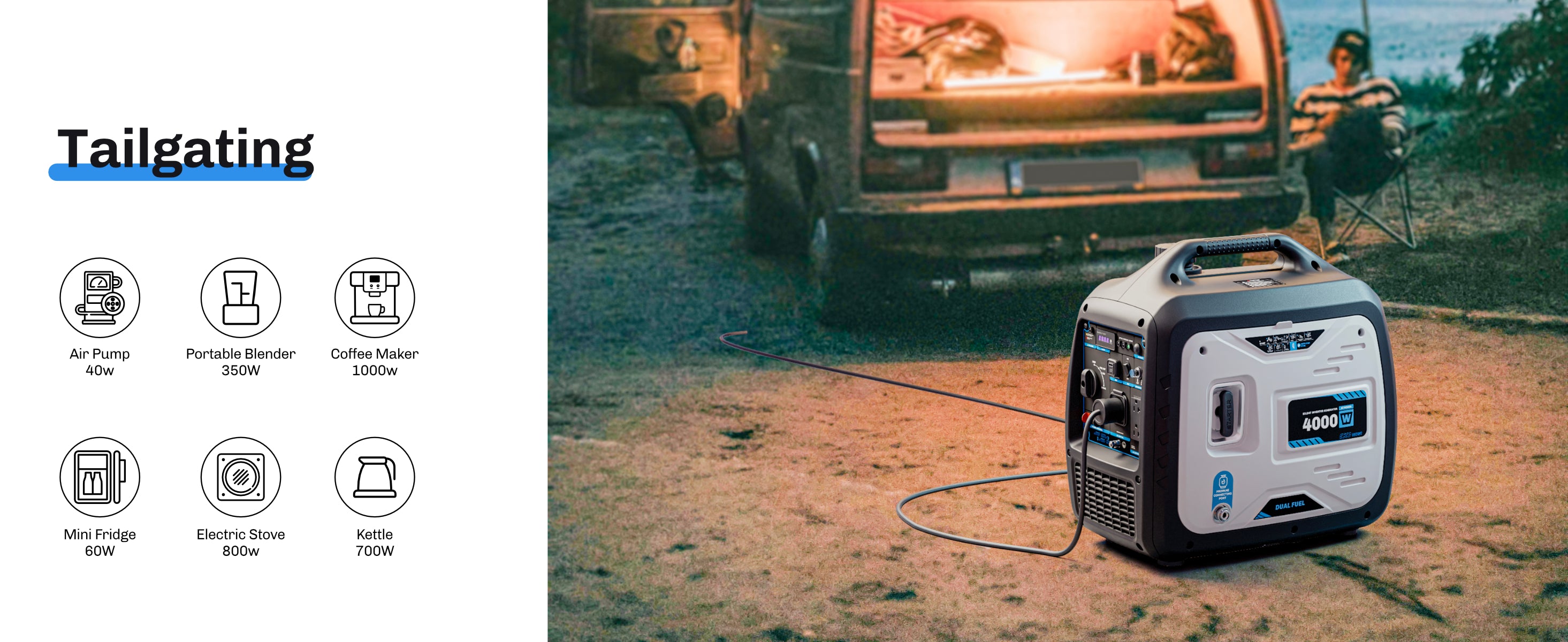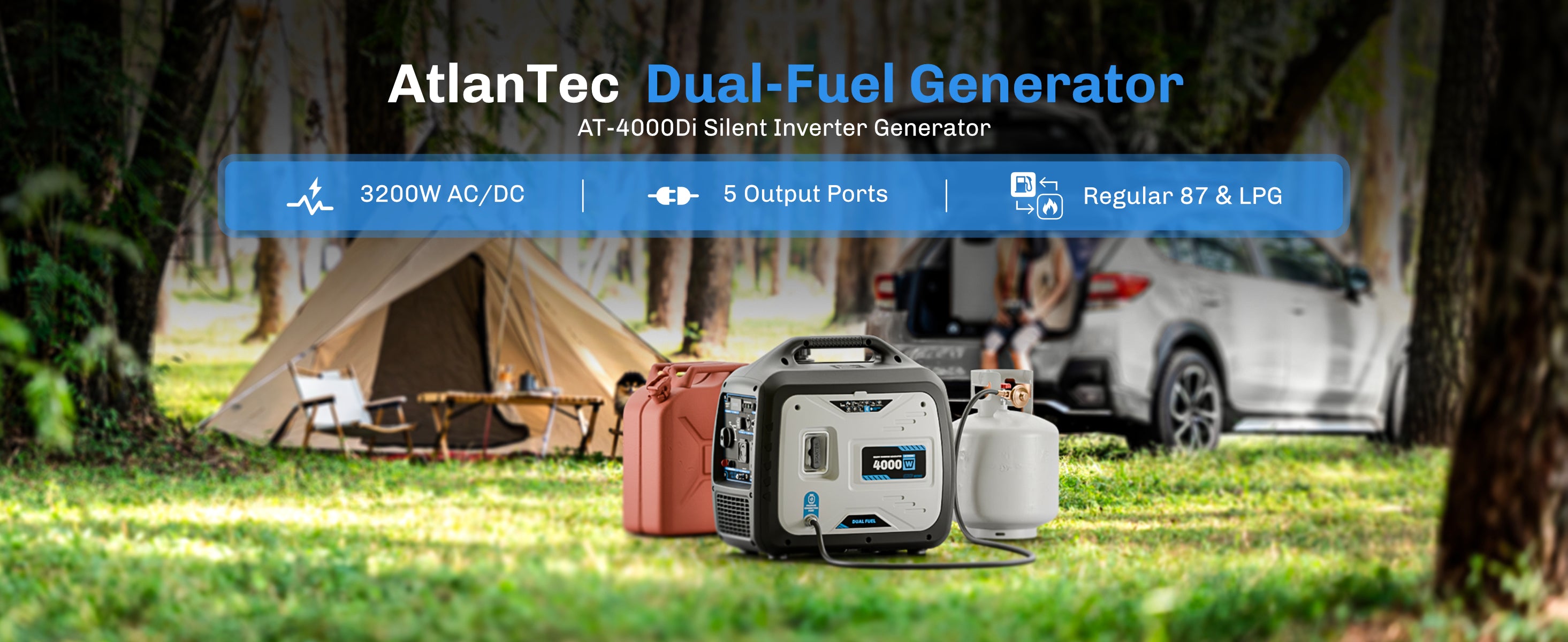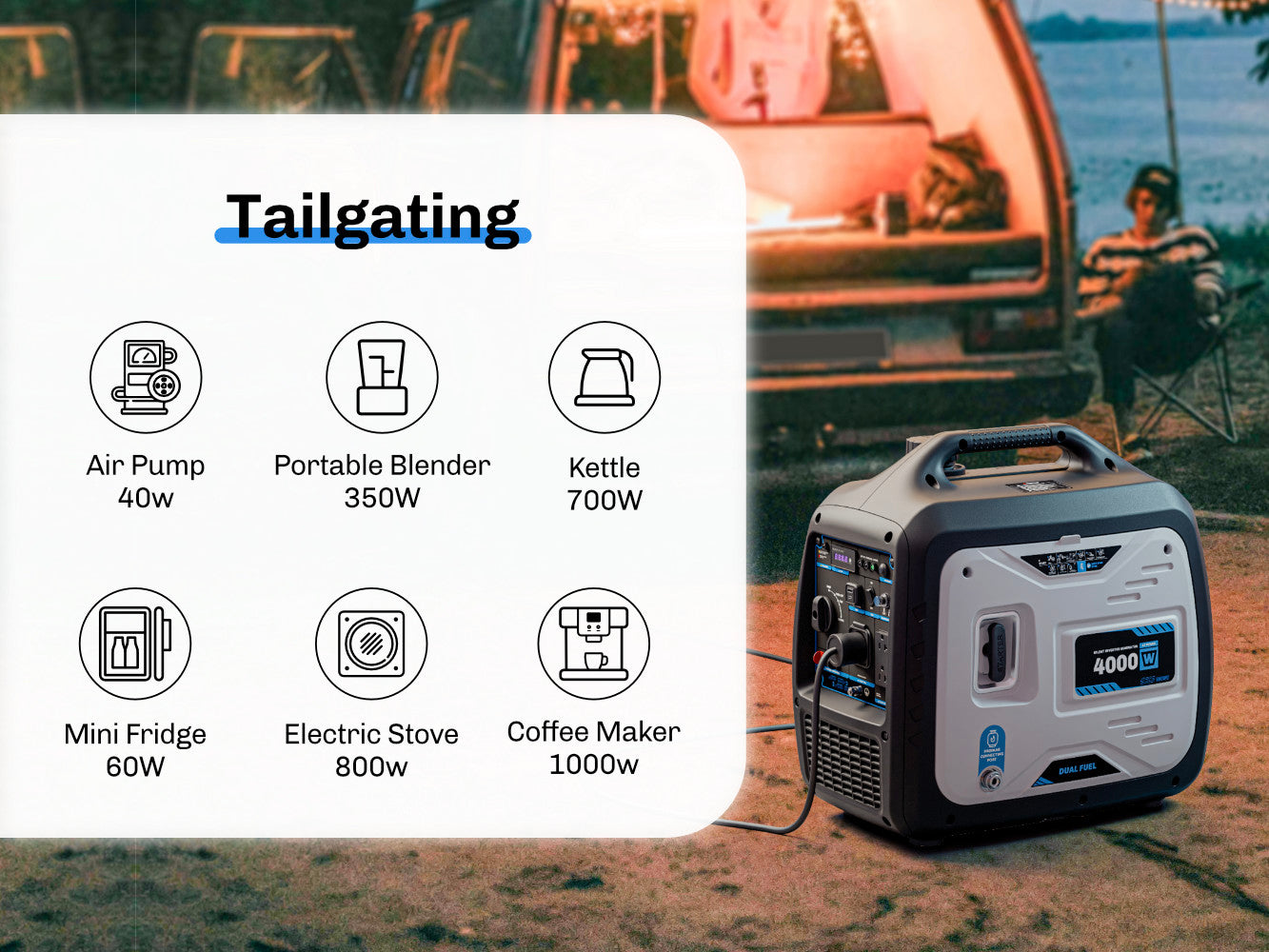 4000W Dual-Fuel Generator, Portable Quiet Inverter Gasoline and LPG Generator for Camping & RV, 120V/30A, EPA Emission Standard Compliant