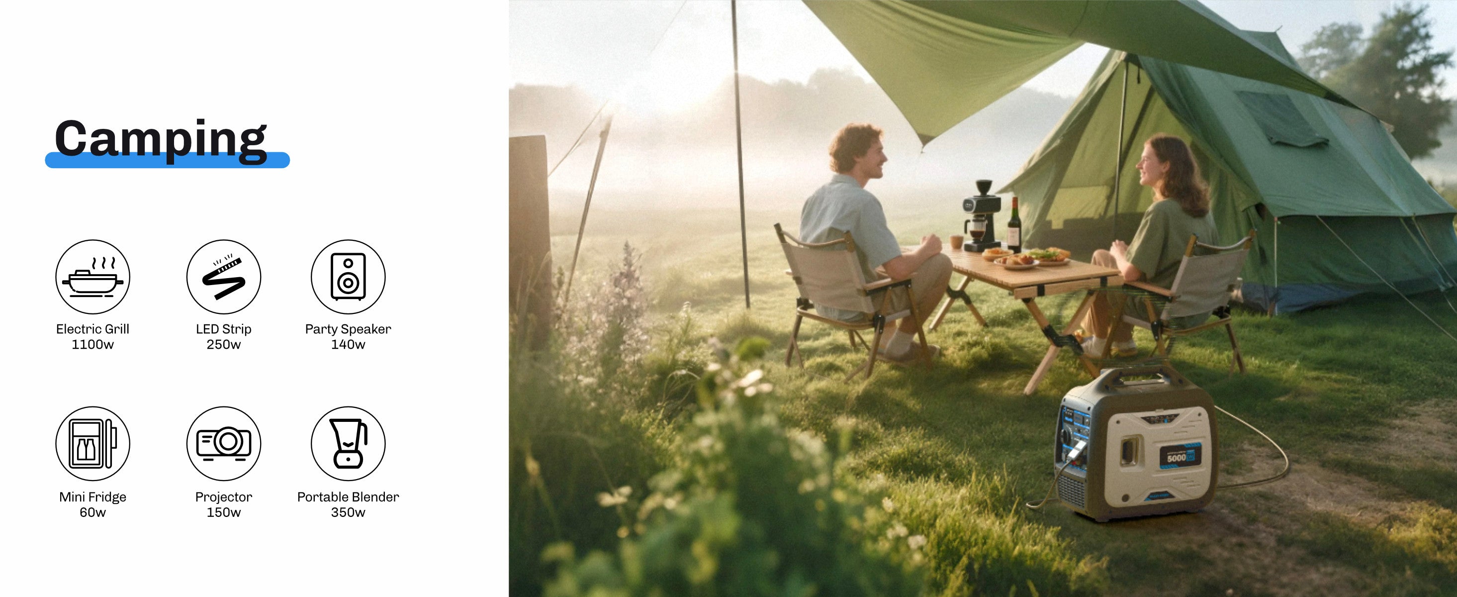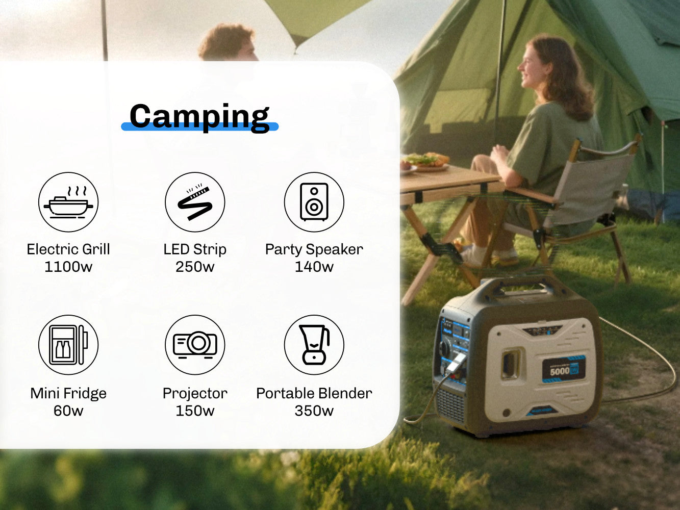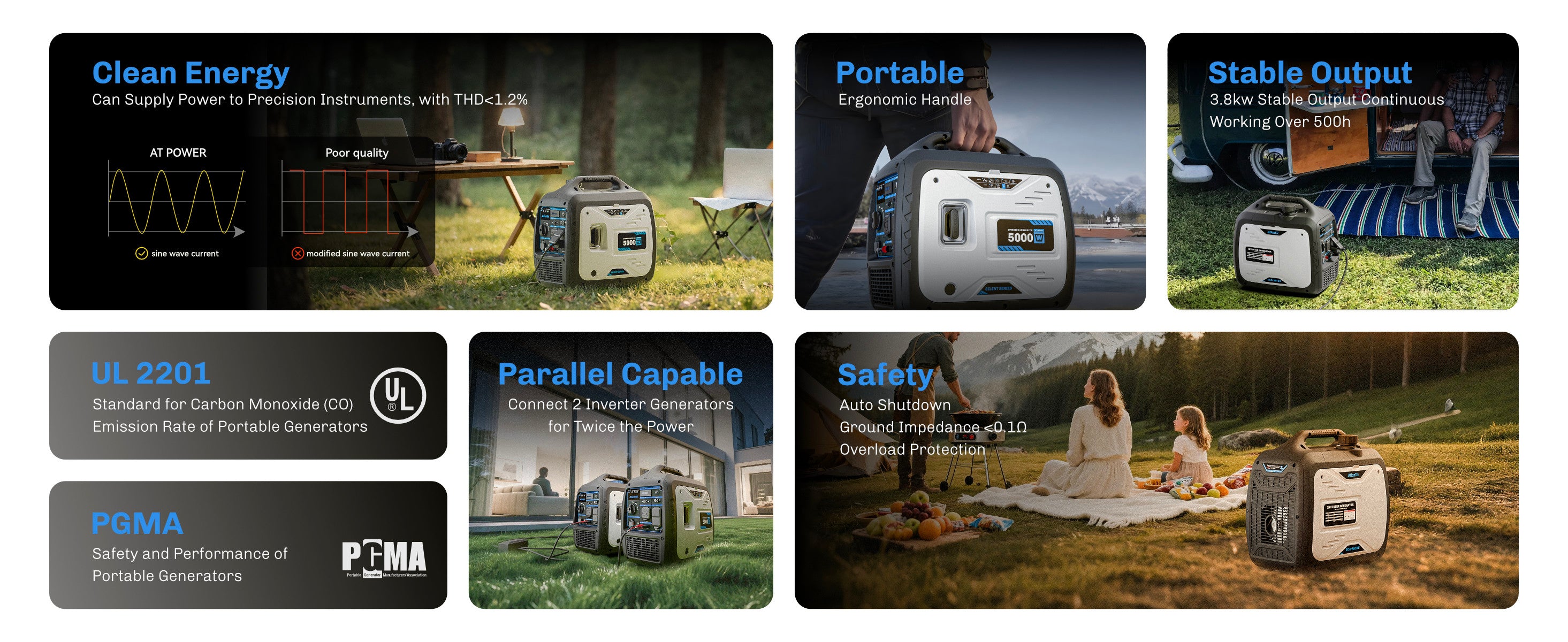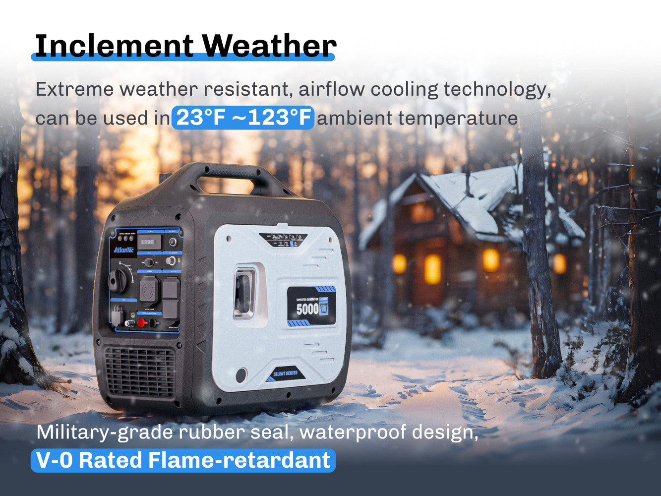 Quiet Inverter Generator Portable for Home, RV, Camping, 120V/30A, 5000W, EPA Emission Standard Compliant
