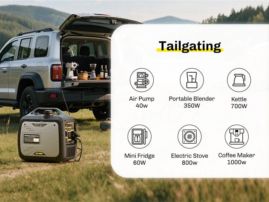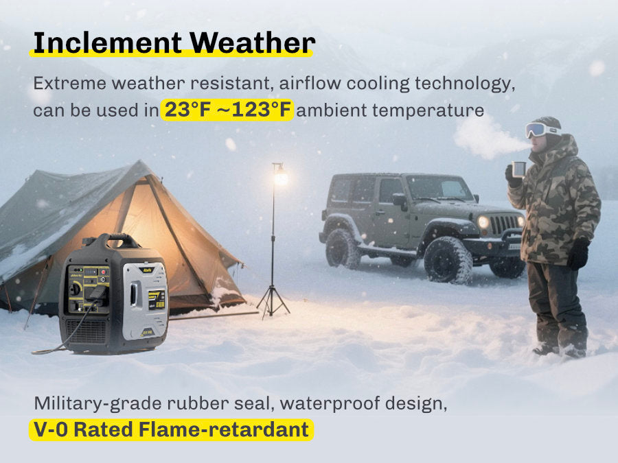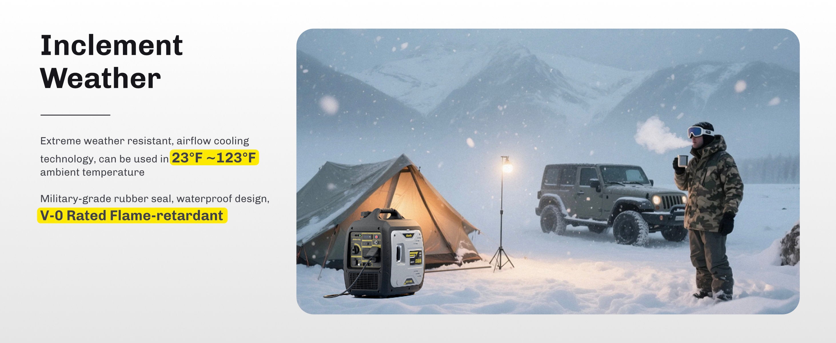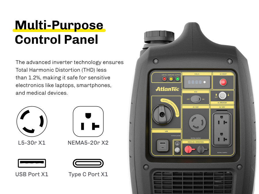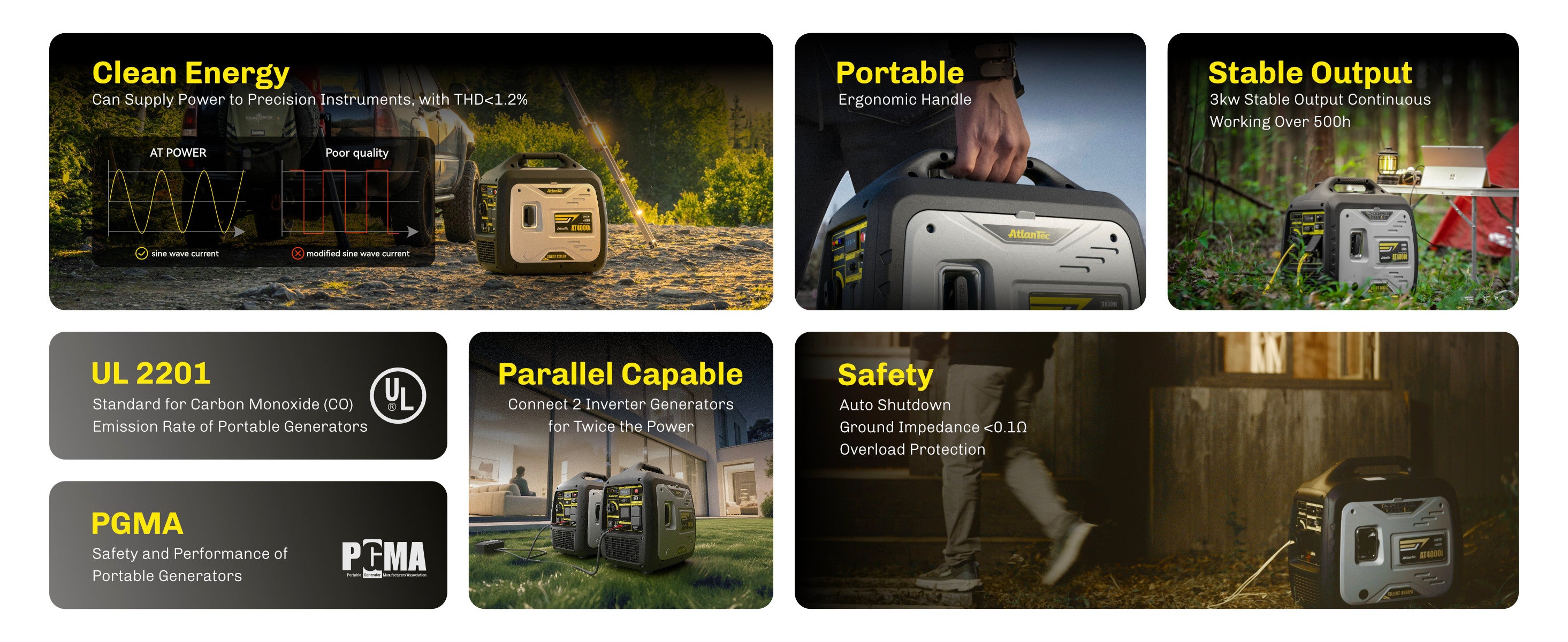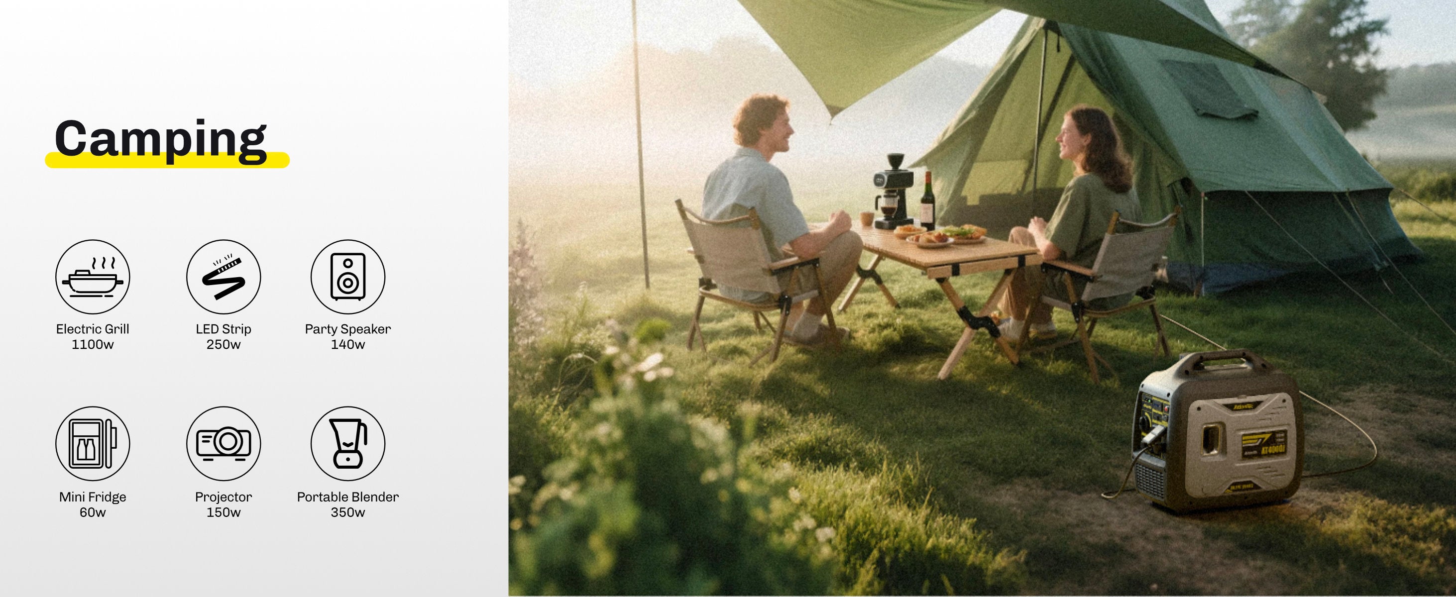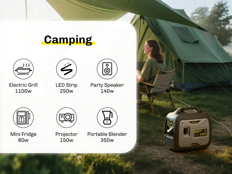 ăPowerful & Clean Energyă- Our 4000 watt inverter generator delivering dependable power for camping, RVs, home backup, and outdoor work. Advanced inverter technology provides clean and stable electricity, making it safe for sensitive electronics like laptops, CPAP machines, and mobile devices.