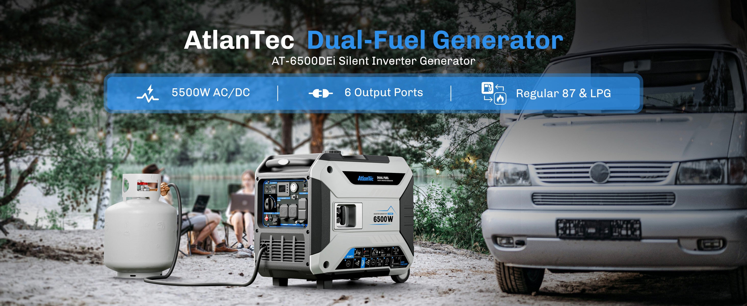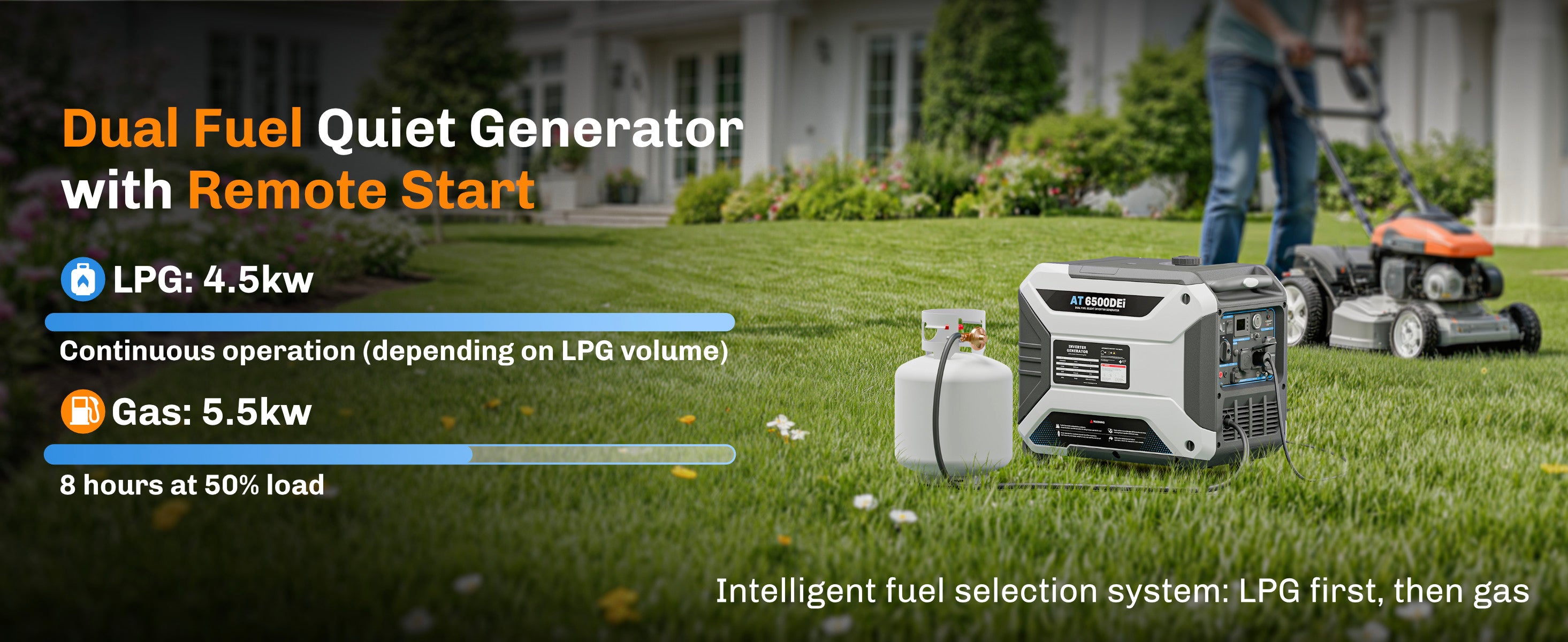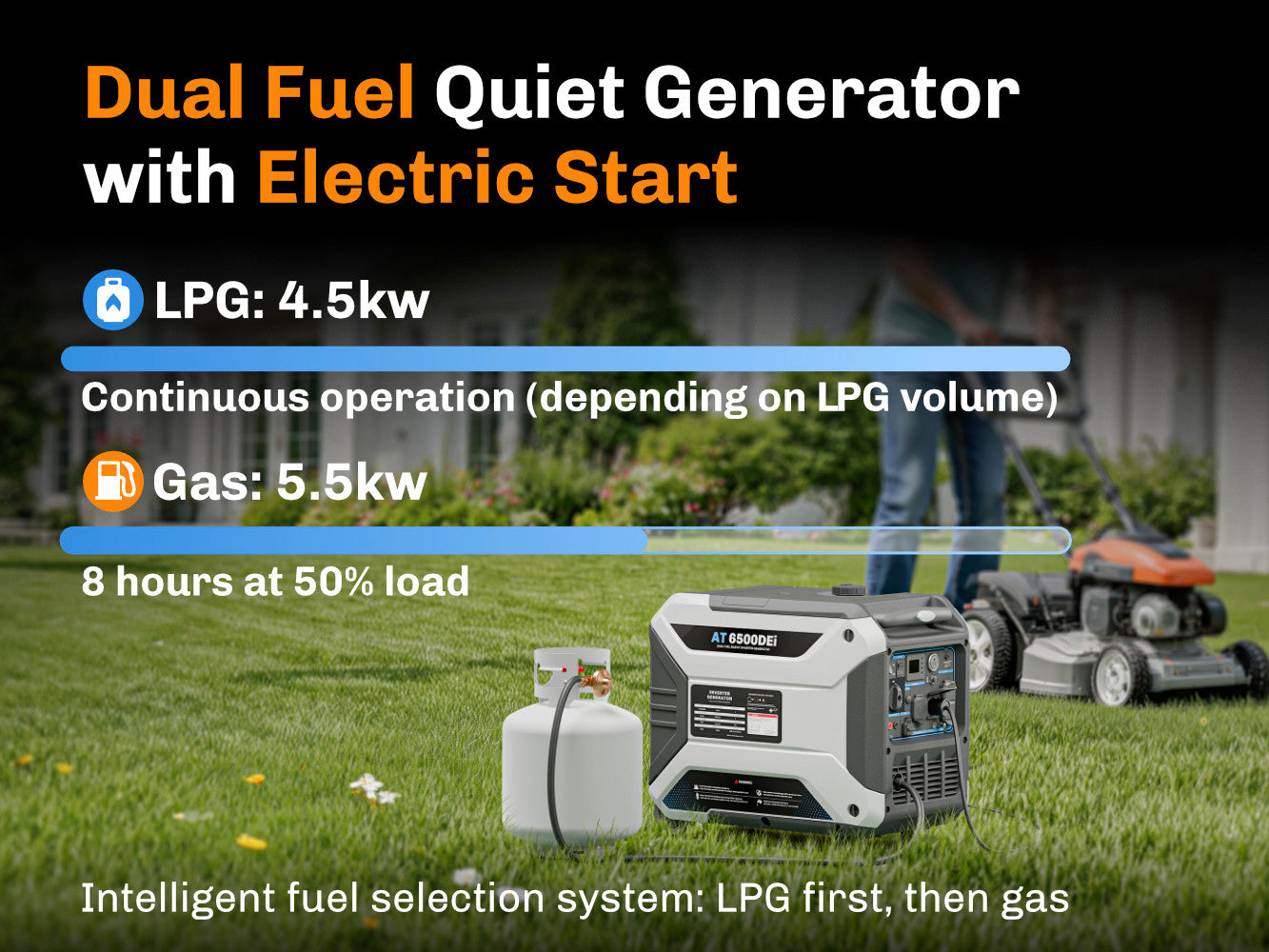 Dual-Fuel Inverter Generator Portable Quiet, 120V/230V/30A, AT6500DEi