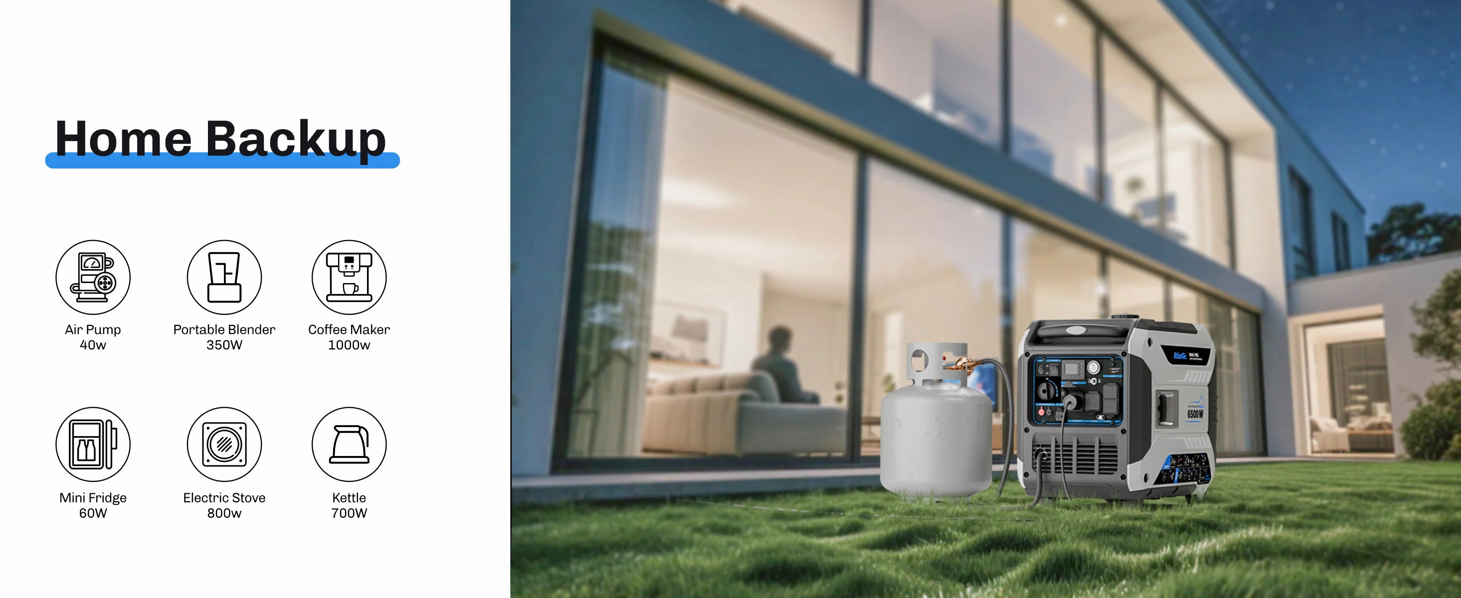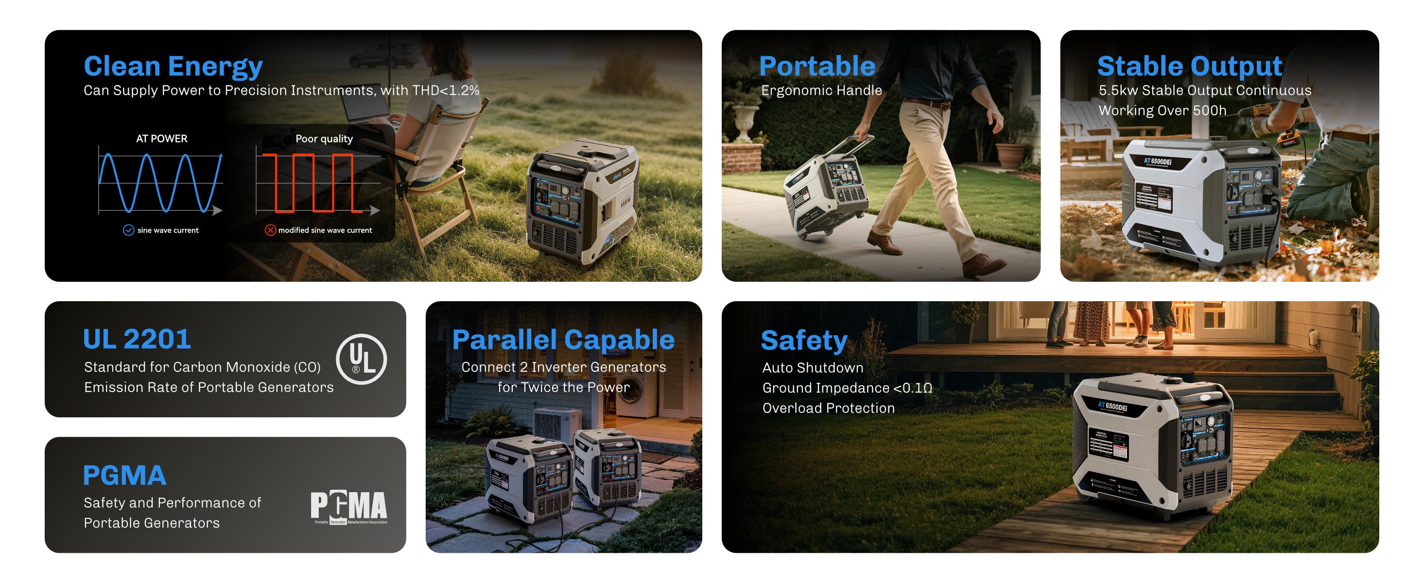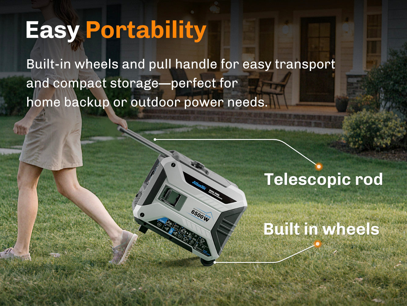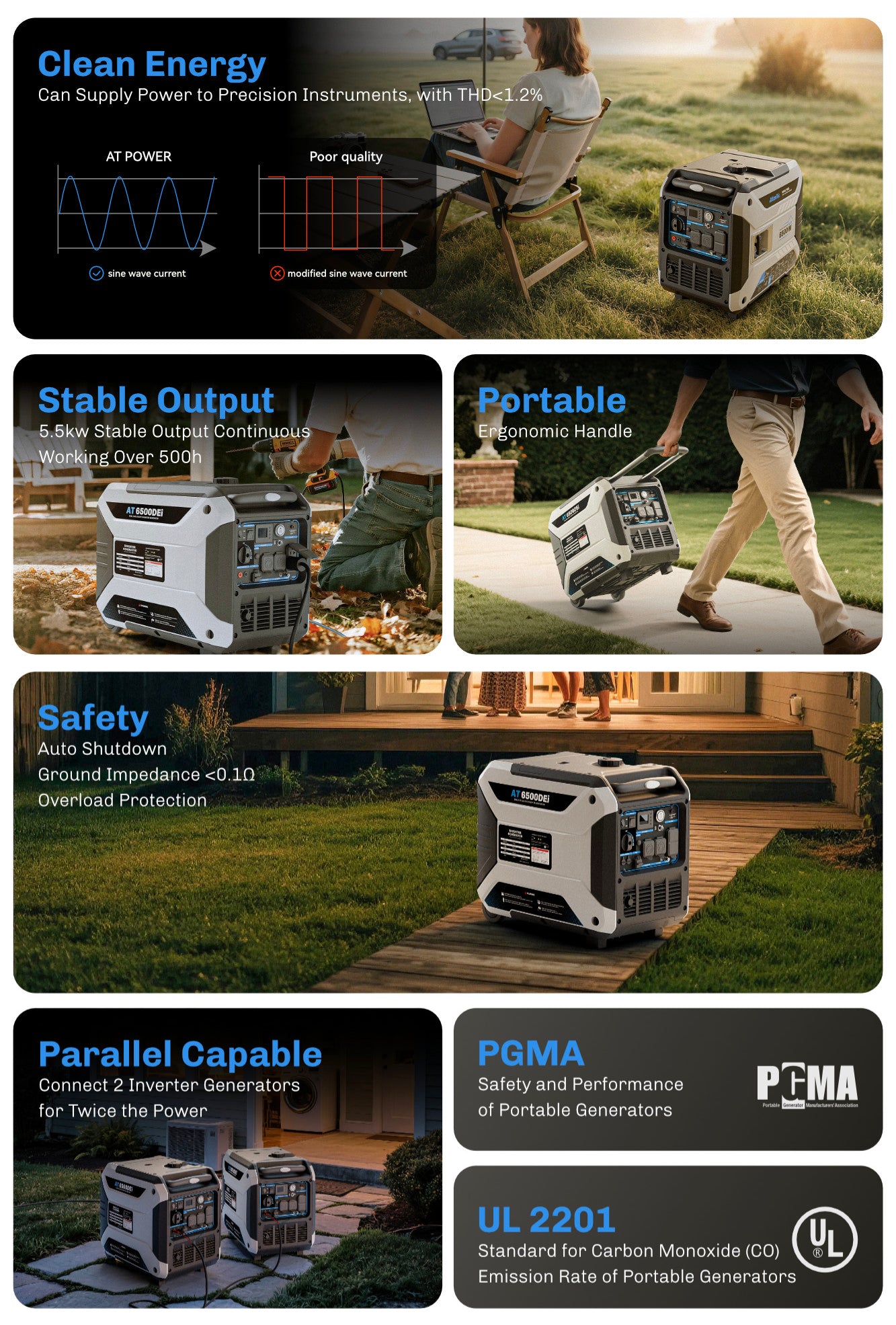 Dual-Fuel Inverter Generator Portable Quiet, 120V/230V/30A, AT6500DEi